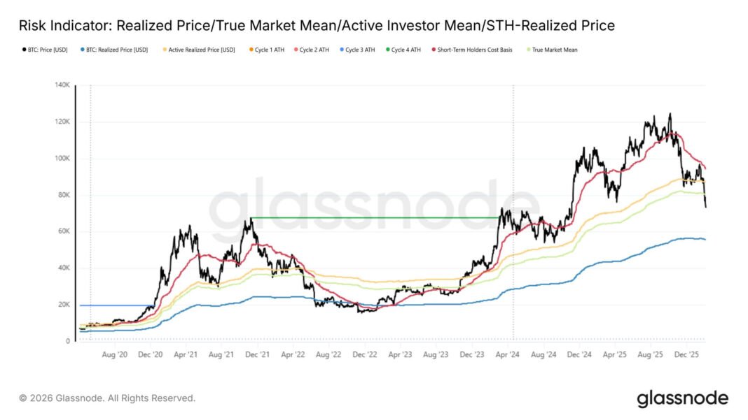 Still, Glassnode data helped frame the extent to which the price had slipped relative to widely watched on-chain reference points.
