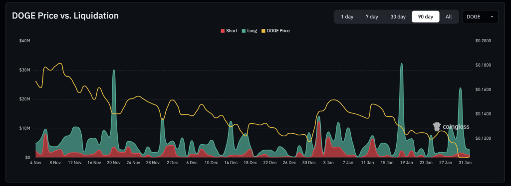 Meanwhile, DOGE’s long liquidations reached their third-highest print in the past 90 days on Friday, as $22.3 million worth of positions evaporated as the price dipped to $0.10.