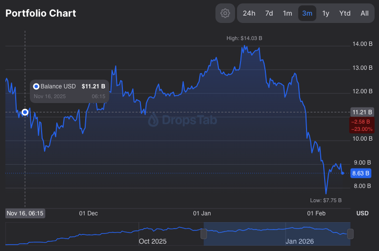 - Unrealized losses exceed $7.8 billion with an average entry price of $3,826.